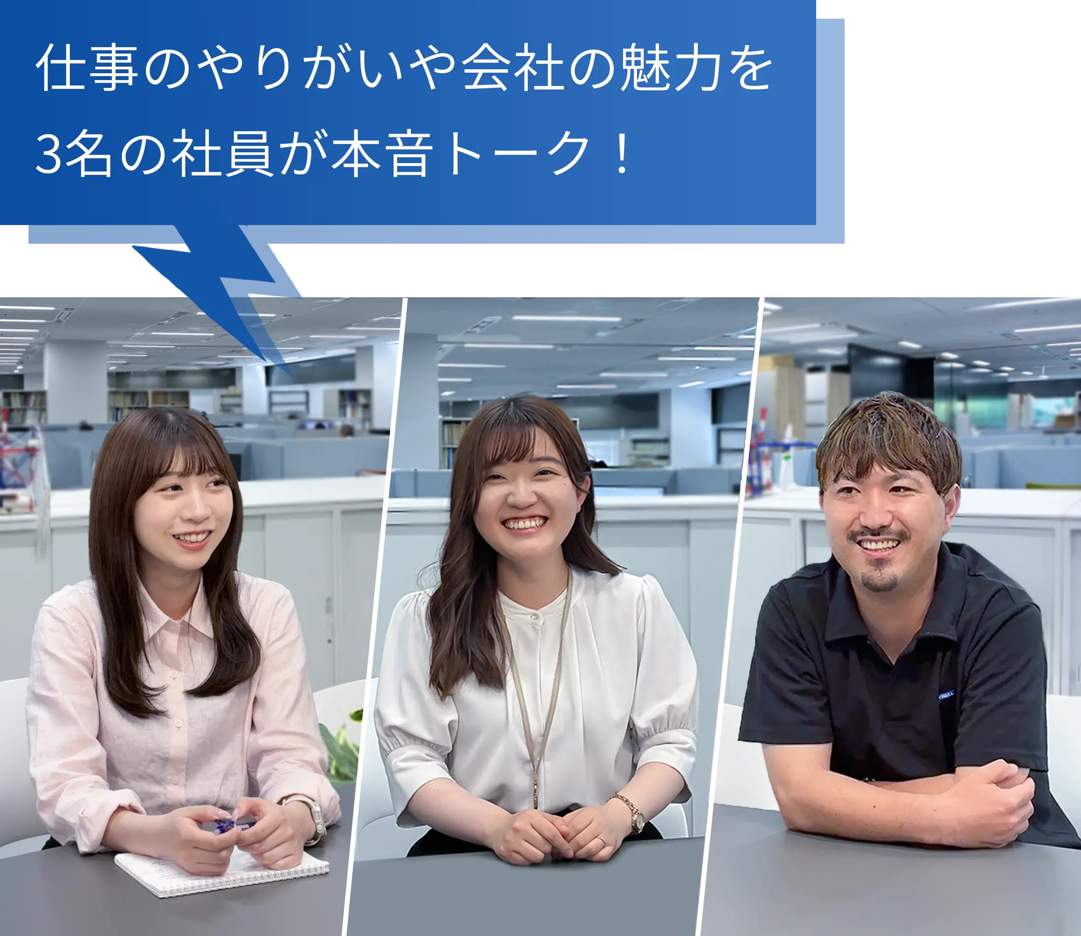 飲む人が多い会社じゃない?というのは冗談。「やるもやらないも自分次第の会社」かな。本当に自分がやりたいことを見つけられたらとことん突き進め、その他の分野も広く学べる環境がある会社です。